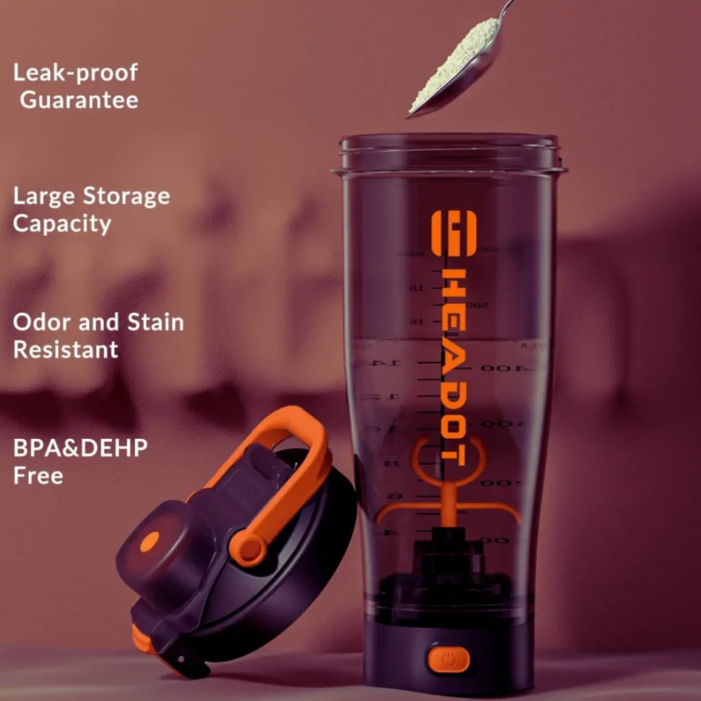 HEADOT Brand 24oz, Rechargeable, BPA Free, 6000RPM, Leak-Proof Electric Protein Smart Shaker For Gyms & Workouts.